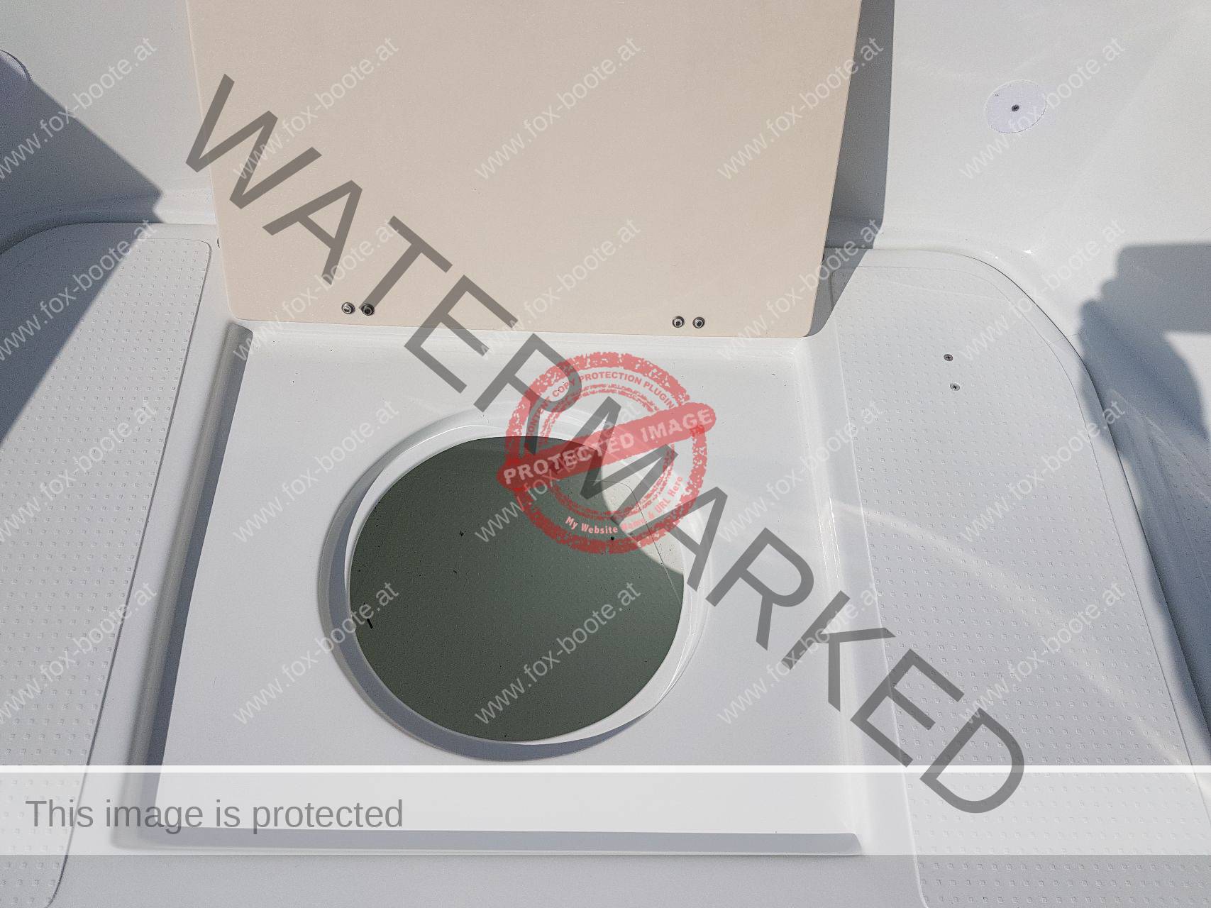 Im Eckbereich befindet sich eine bequeme, tiefe Sitzbank mit einer hohen Rückenlehne, und im Bug ein großer Sitz- oder Liegebereich. Je nach Bedarf kann der dort aufstellbare Tisch zu einer Liegefläche umgebaut werden, die mit einer Größe von 2,10m x 1,55m in dieser Klasse einzigartig ist. Als Boot der Kategorie C (küstennahe Gewässer) bietet es durch seine Kippstabilität und die hohen Bordwände (60cm) ein sicheres Gefühl an Bord. Bereits mit 15 PS erreicht das Boot mit zwei Erwachsenen eine Geschwindigkeit von fast 30 km/h und somit problemlos die Gleitfahrt.